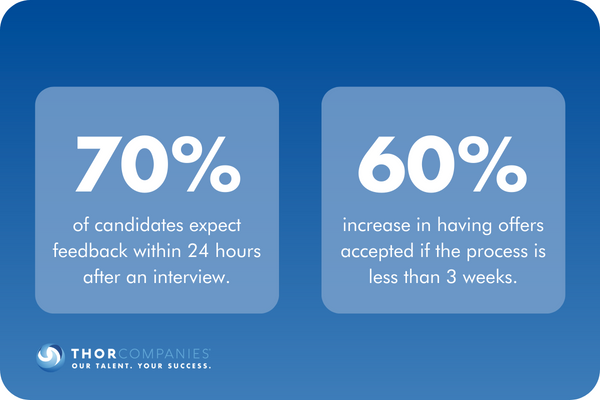 As a result, we have seen a greater understanding of the expectations between all parties in the recruitment process. 70% of candidates expect feedback within 24 hours after an interview, and if the recruitment process takes less than 3 weeks there is a 60% increase in having offers accepted. Sharing these insights with our partners has resulted in quicker and smoother recruitment processes, which in return means higher efficiency for us, our candidates, and our clients.