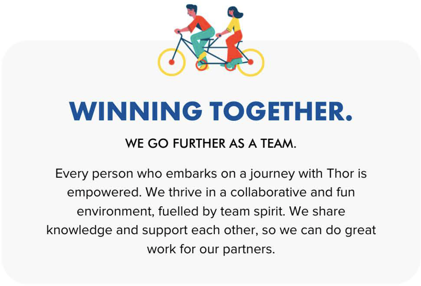 At Thor, we not only are committed to helping our employees succeed in their careers but we believe that putting the well-being and happiness of our employees at the forefront of our company values is essential for our own success. Trips such as these highlight how we can thrive in a collaborative and fun environment, fuelled but team spirit to reach new heights and win together.